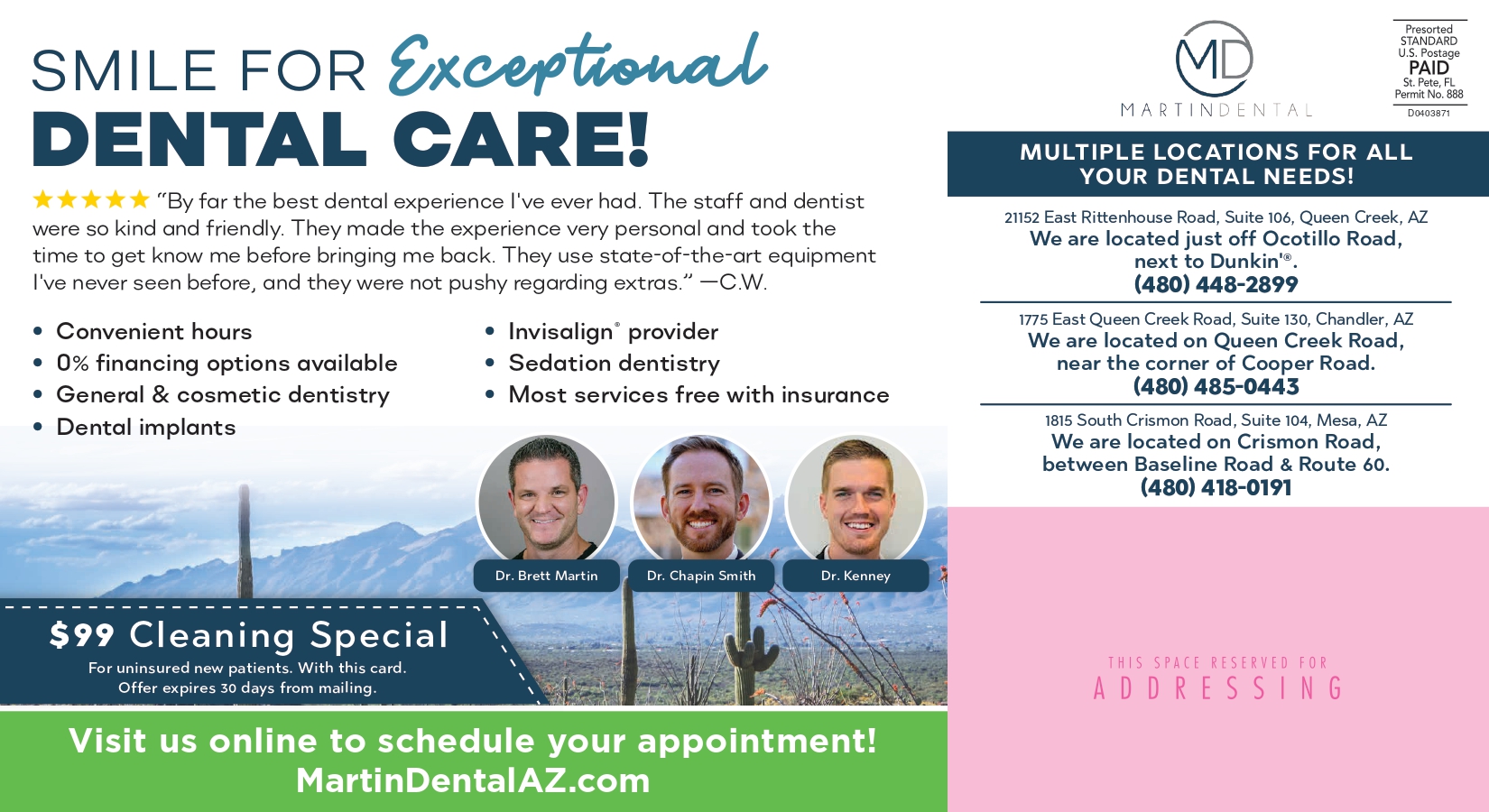 Looking for a trusted, kid-friendly dentist in Mesa? Martin Dental is proud to be your neighborhood’s go-to for thorough dental care with a friendly touch.